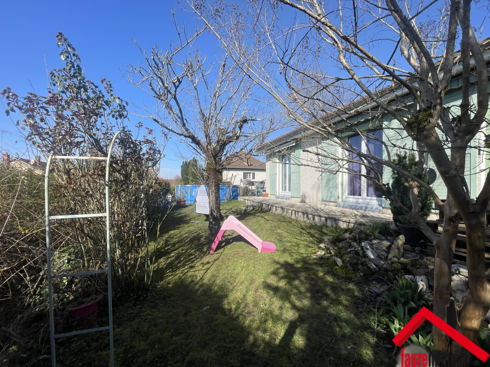 FAUREIMMO.FR/ Maison de type plain pied à proximité directe des écoles et commerces comprenant 4 chambres, salon-séjour, cuisine, salle de bain, entrée, buanderie, veranda, terrasse et garage indépendant le tout sur un terrain d'environ1460 m2 / Contact : 05 19 07 35 25 - accueil@faureimmo.fr /