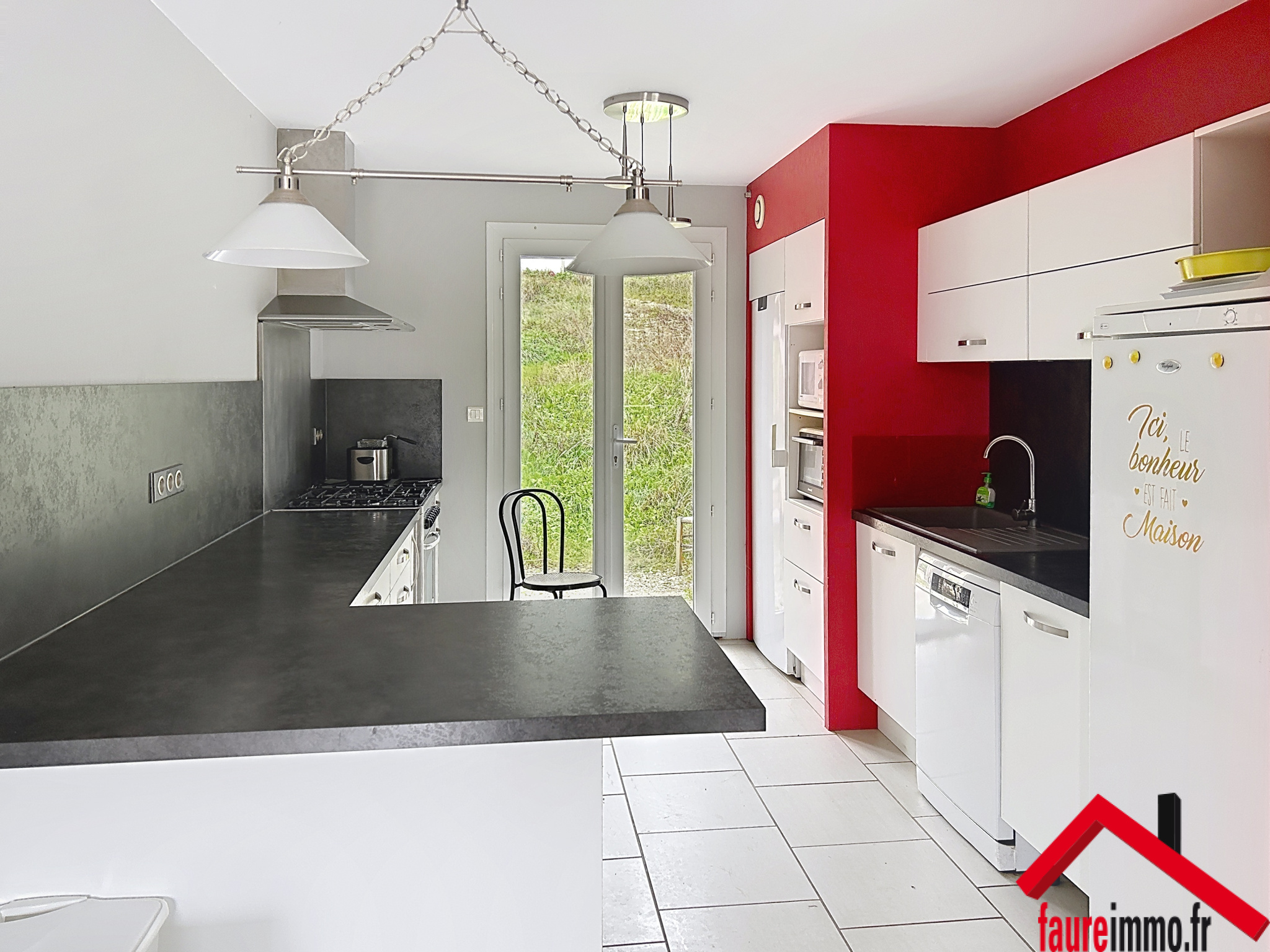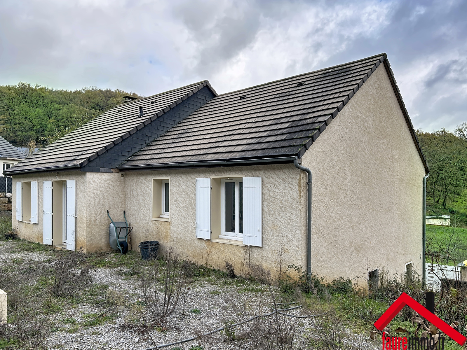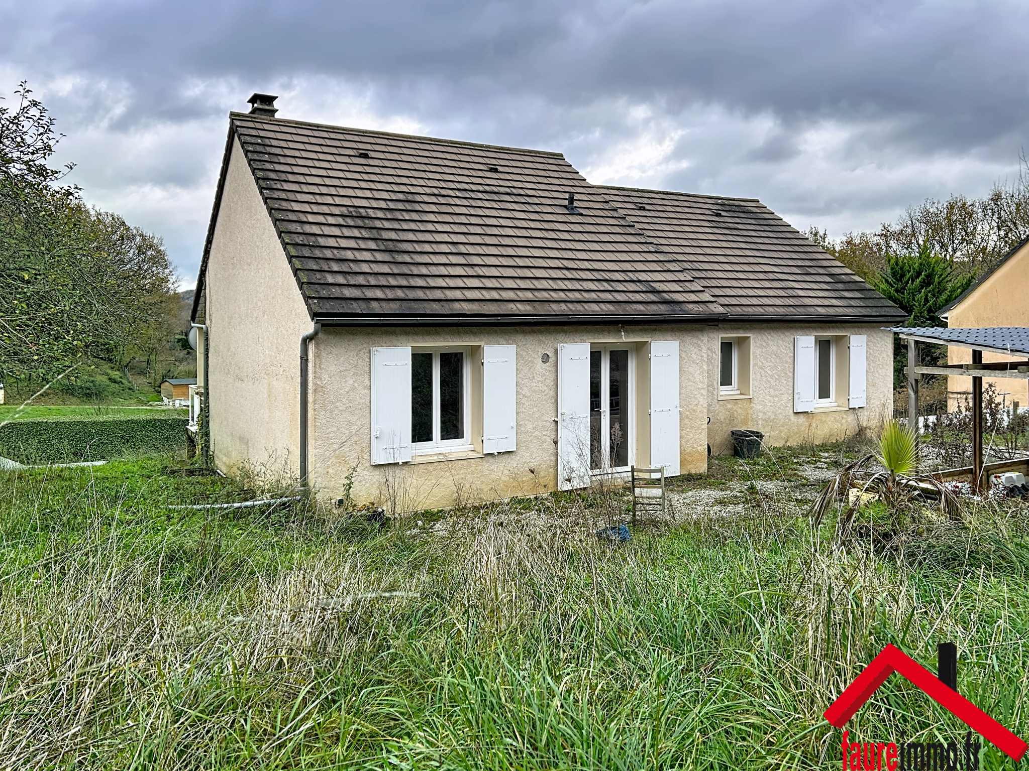 FAUREIMMO / Maison d'habitation comprenant trois chambres, avec possibilité d'en créer une quatrième, salon-séjour, cuisine, salle de bain, salle d'eau, wc, garage et terrasse couverte le tout sur un terrain d'environ 1211 m2 / Contact : 05 19 07 35 25 - accueil@faureimmo.fr /