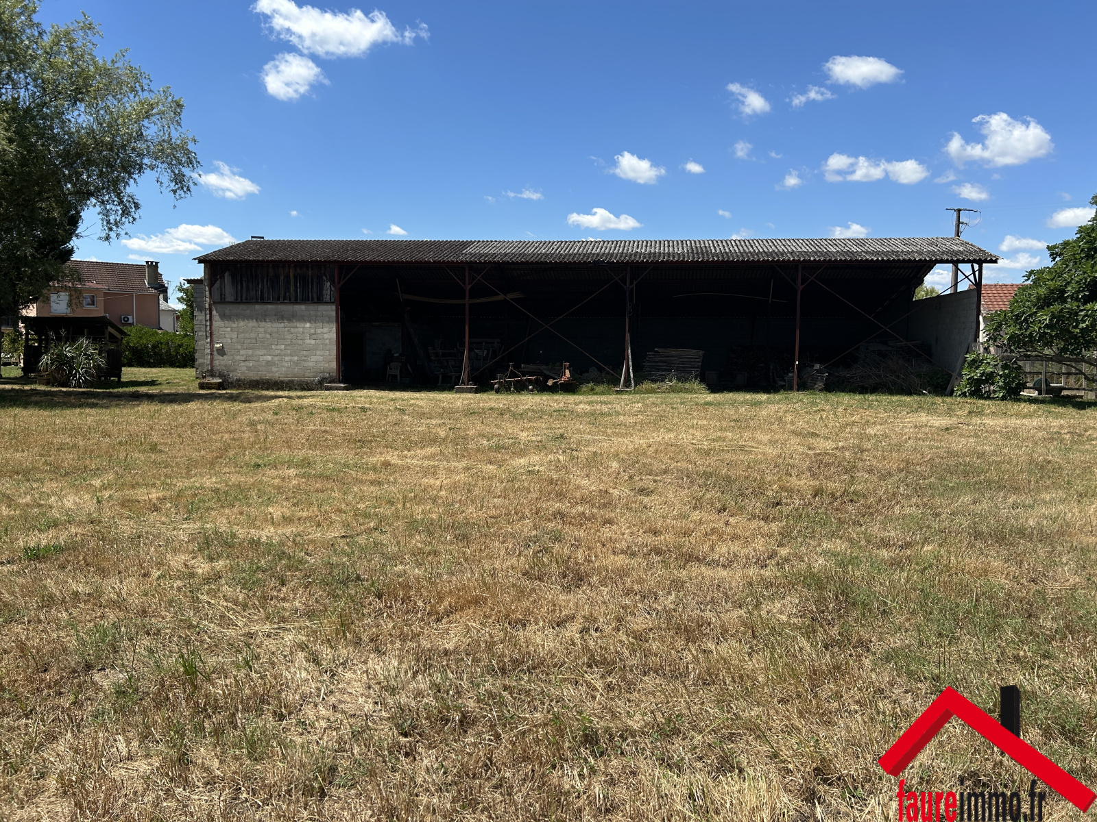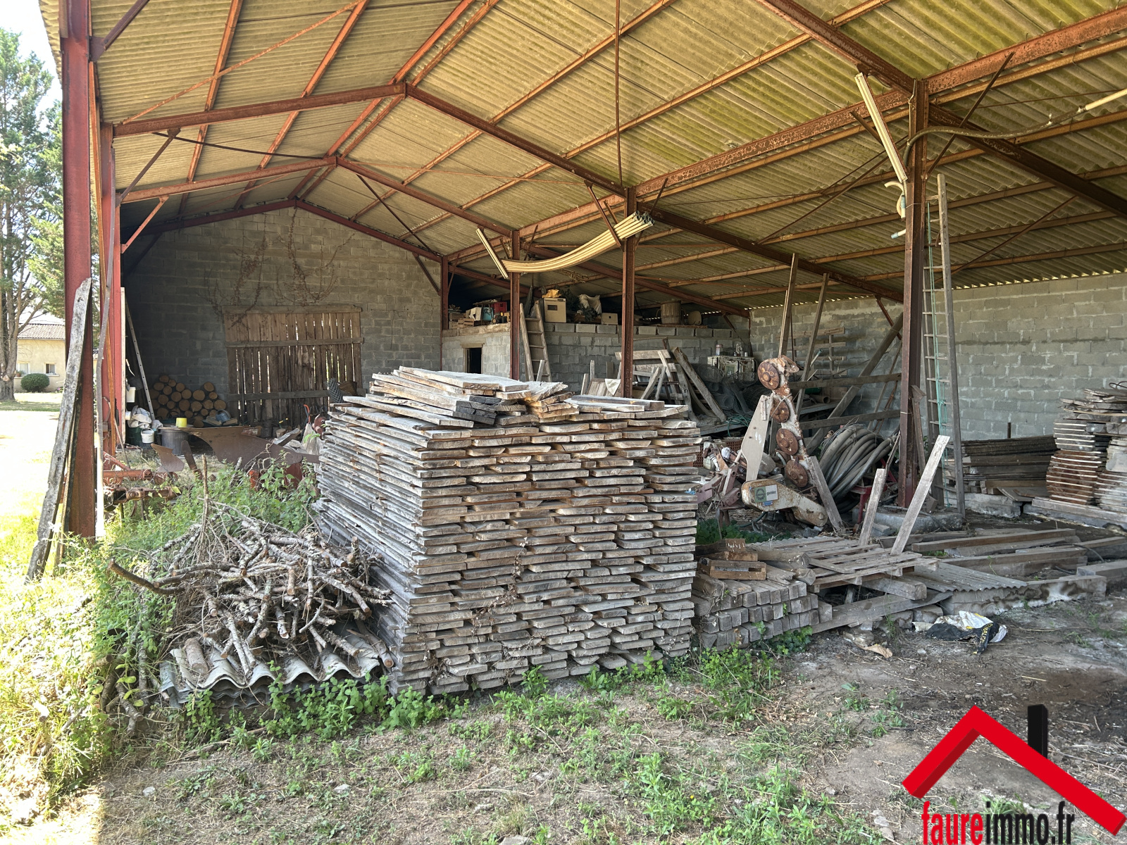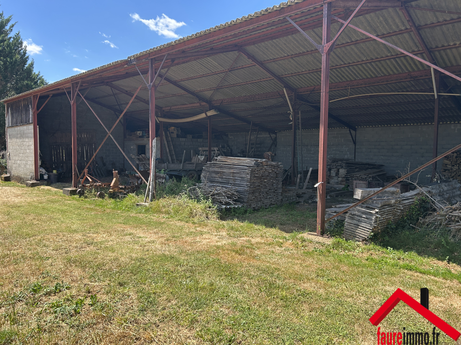 EXCLUSIVITÉ FAUREIMMO / Hangar ouvert en ossature métallique d'une surface d'environ 450 m2 sur un terrain d'environ 1300 m2 / Contact : 05 19 07 35 25 - accueil@faureimmo.fr /