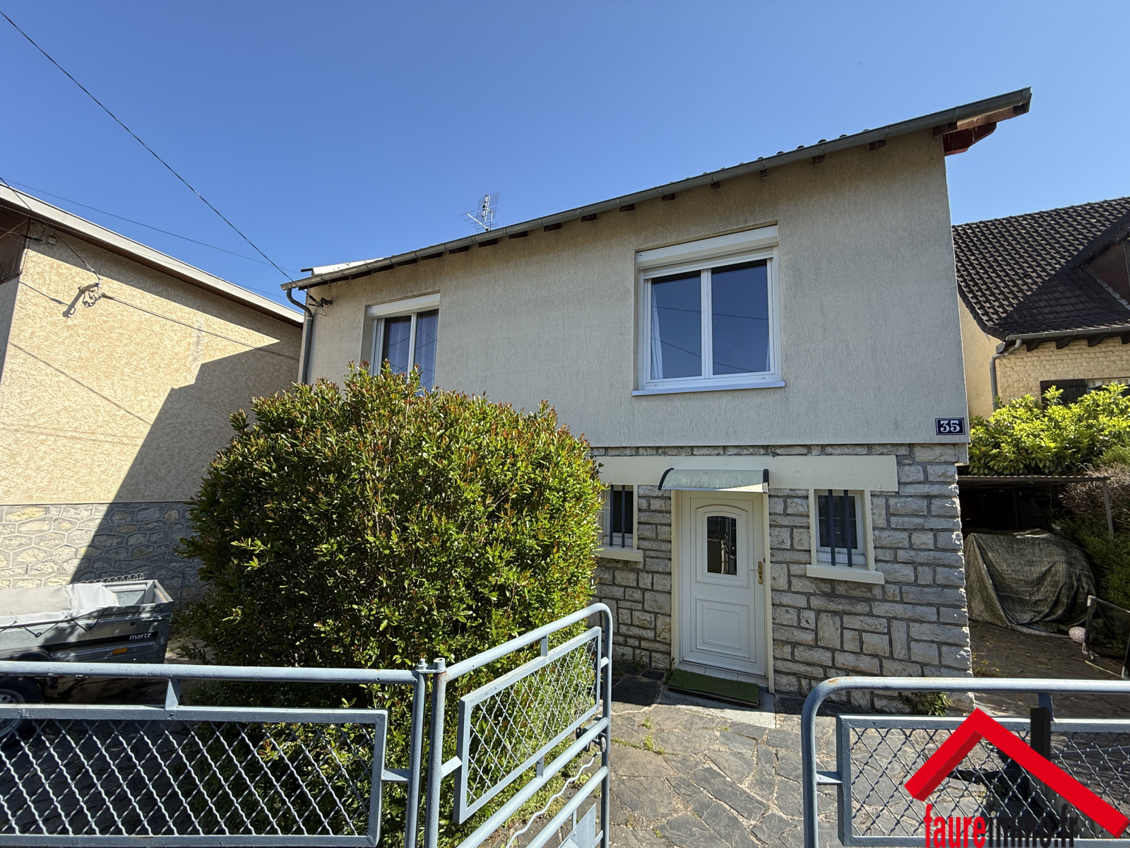 FAUREIMMO.FR/ Une maison d'habitation idéalement situé comprenant Entrée, Séjour, Cuisine, 2 Chambres, Salle d'eau, WC, Garage, atelier, Car port, le tout sur 635 m2 de terrain clos et arboré. Contact : 05 19 98 03 27 - accueil@faureimmo.fr