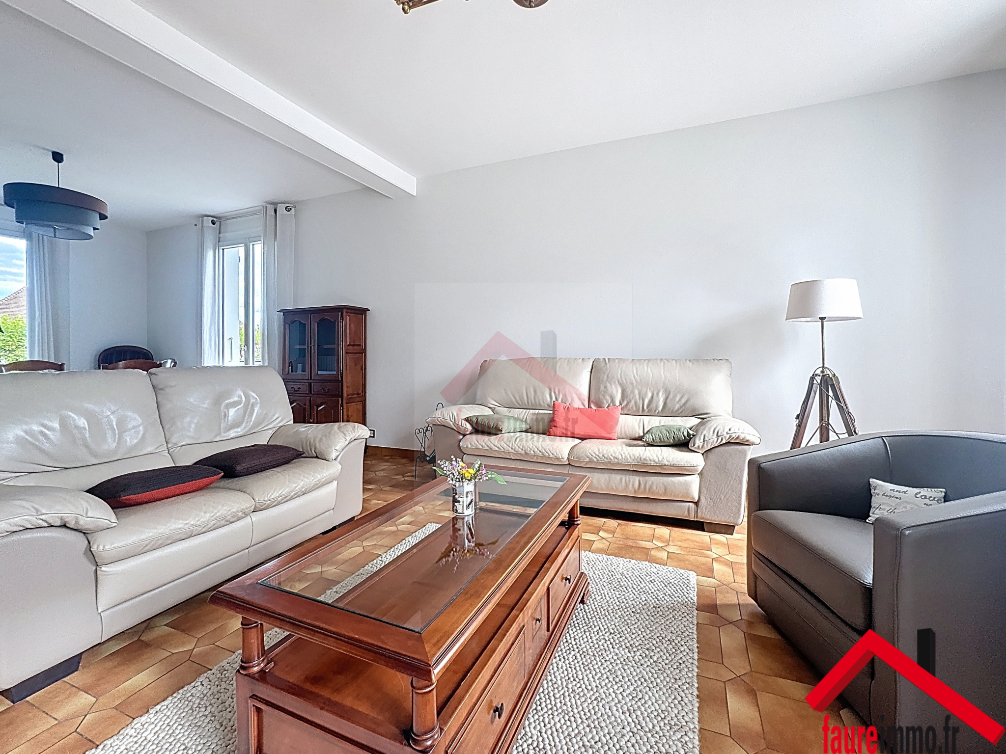 FAUREIMMO.FR/ Une maison idéalement située à proximité des commodités comprenant de plain-pied un vaste salon-séjour, une salle a manger ,une cuisine équipée, un wc, une buanderie, à l'étage, quatre chambres, deux salles de bain, trois wc, une terrasse, le tout sur un terrain de 624 m2 entièrement clos et arboré./ CONTACT : 05-19-98-03-27-accueil@faureimmo.fr.