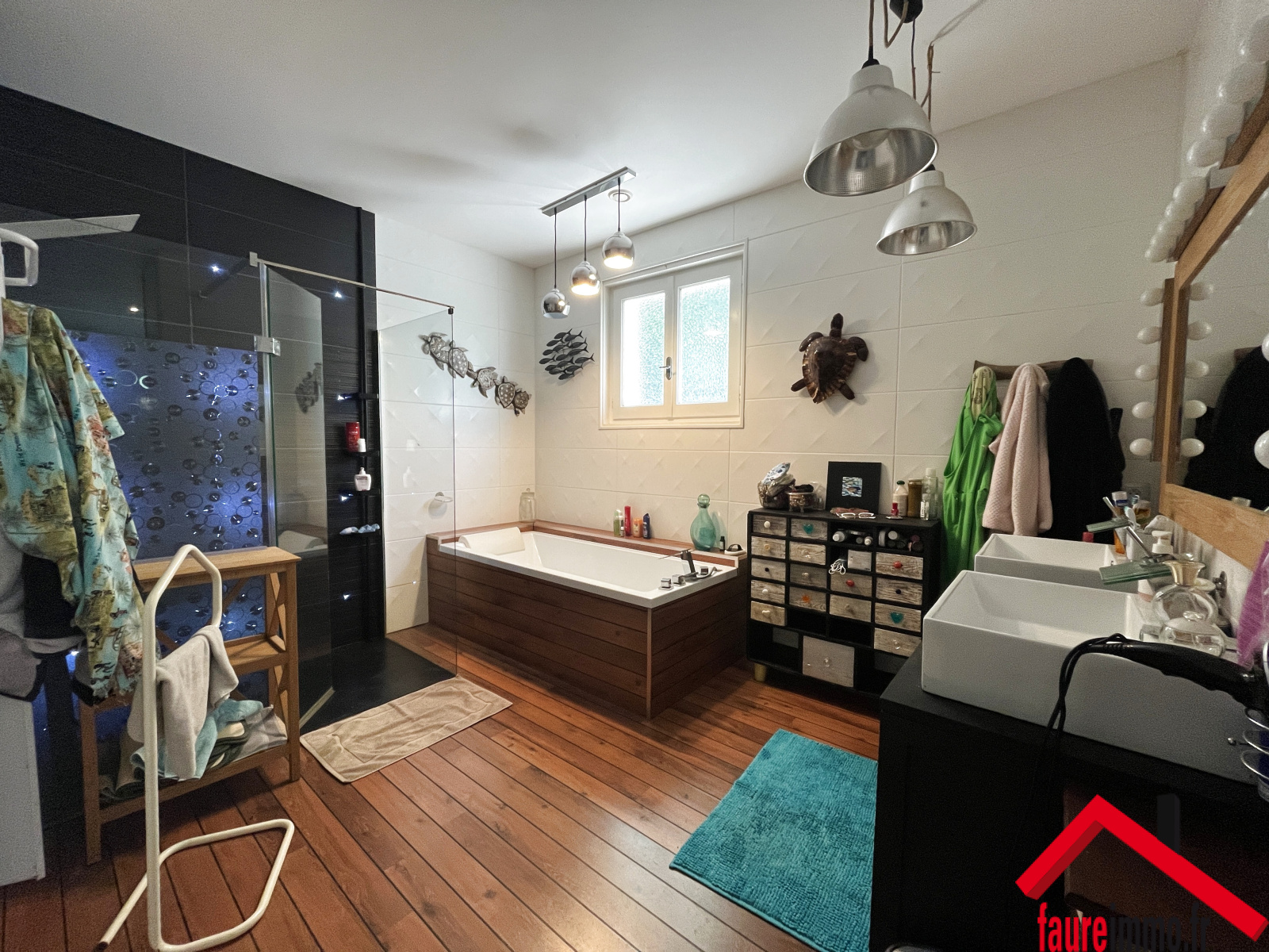 EXCLUSIVITÉ FAUREIMMO.FR / Maison d'habitation comprenant une cuisine, un salon-séjour, 4 chambres, une mezzanine, 2 salle d'eau, 2 WC, un double garage, une buanderie, un local, un atelier et une piscine. Le tout sur un terrain d'environ 826 métres carrès. / CONTACT : 05-87 49-45-36 / accueil@faureimmo.fr